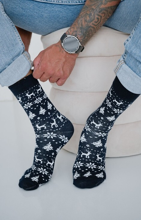 1290-026 Норвежки десен Мъжки чорапи Милена, тъмносини - коледни, памук