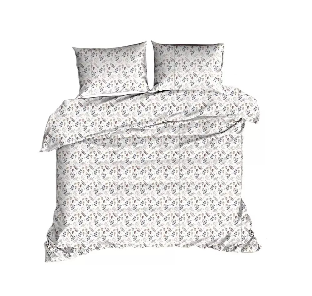 614N Класическо памучно спално бельо E24 Допълнителен комплект спално бельо, бяло, кафяво, листа, клонки - 100% памук, издръжливо, цветно, комплект от 2 части