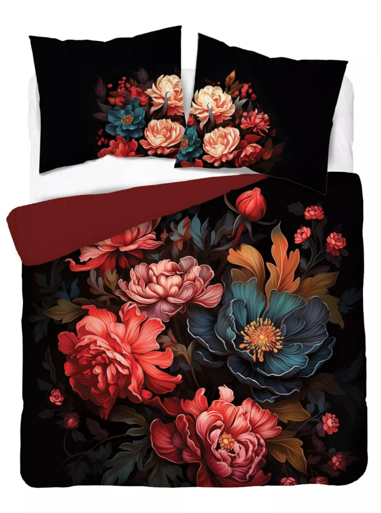 5116 Комплект спално бельо от памук Holland Detexpol, черен с мотив на божур – 100% памук, двустранен, полско производство