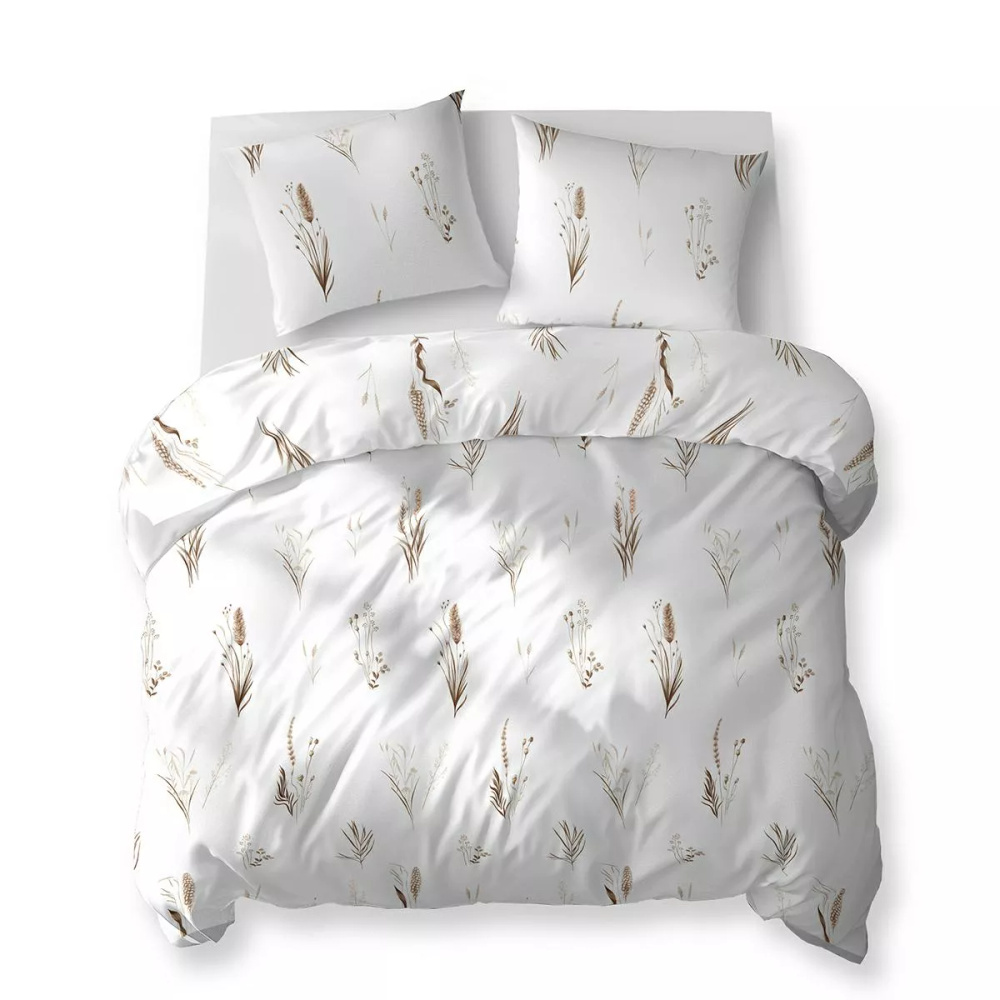 5771 B Cotton Bloom Комплект спално бельо от памук Detexpol, бял с кафява и бежова трева и класове – 100% памук, двустранен, полско производство