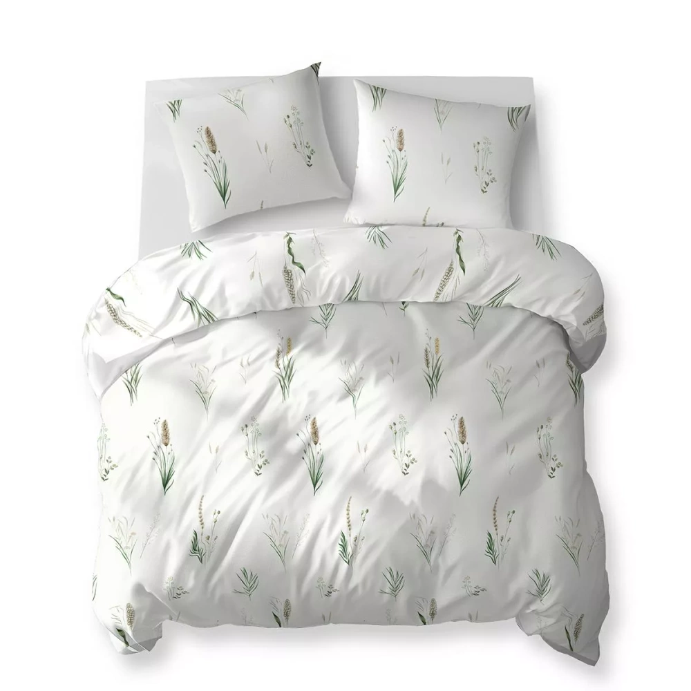 5771 A Cotton Bloom Памучно спално бельо Detexpol, бяло с трева и царевични кочани – 100% памук, двустранно, полско производство