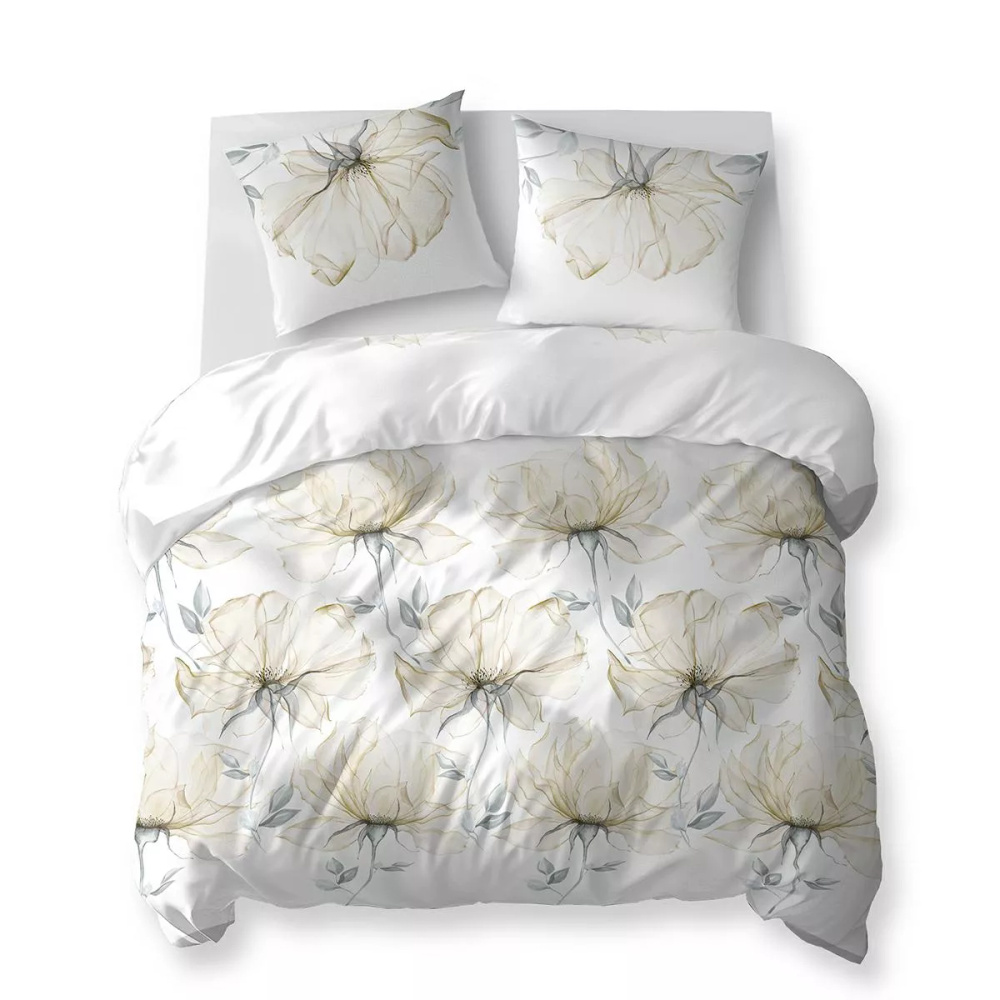 5770 B Cotton Bloom Памучно спално бельо Detexpol, бяло с едри кремави цветя – 100% памук, двустранно, полско производство