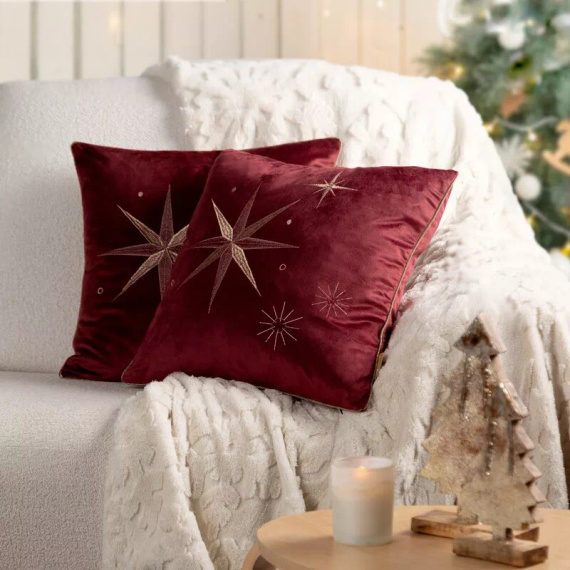 - Елегантната коледна калъфка за възглавница Eurofirany CHP 259 в бордо с бродерия със звезди във формата на шампанско. Мекият кадифе с фин блясък създава уникална атмосфера и добавя празничен чар към всеки интериор.