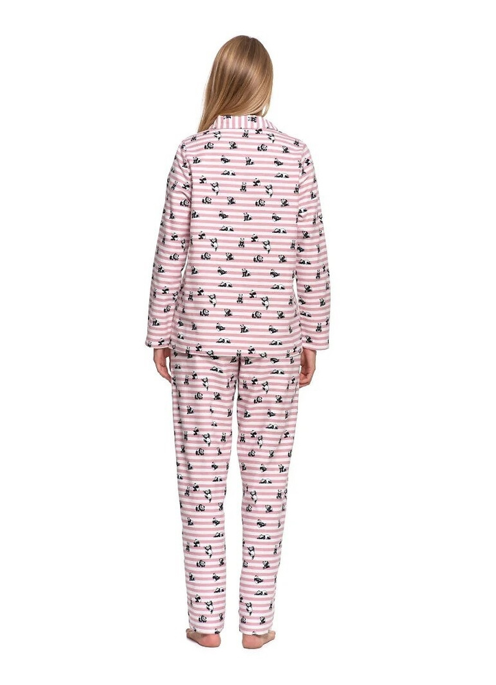 Дамска пижама Moraj PDD6300-002, розова - памучен фланел, на райета с мотив панда