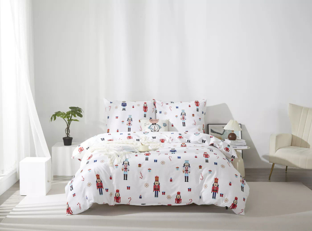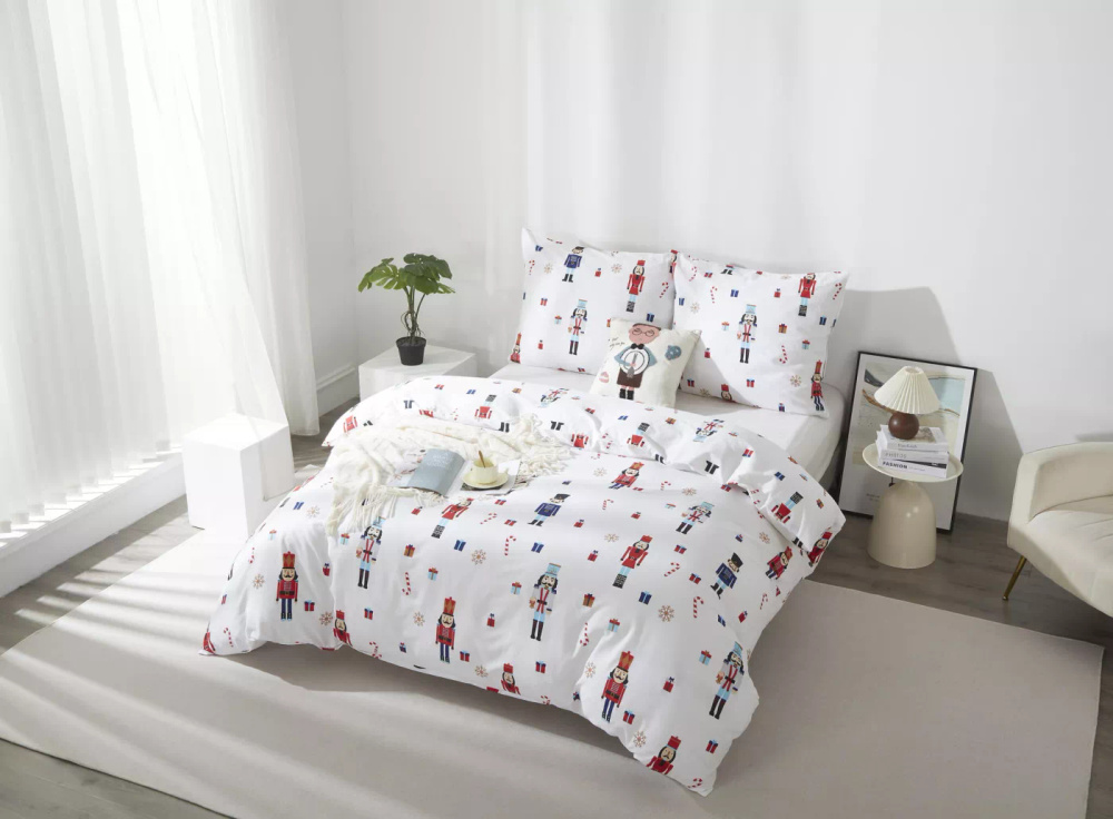 Коледен комплект спално бельо от памучен сатен от Needle and Thread Nutcracker – елегантен и мек
