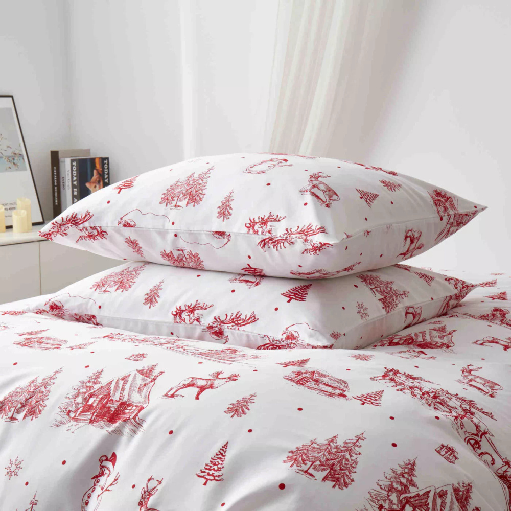 • Луксозно коледно спално бельо от Spod Igły i Nitki, изработено от памучен сатен. Гладко, меко и деликатно блестящо – идеално за зимни нощи.