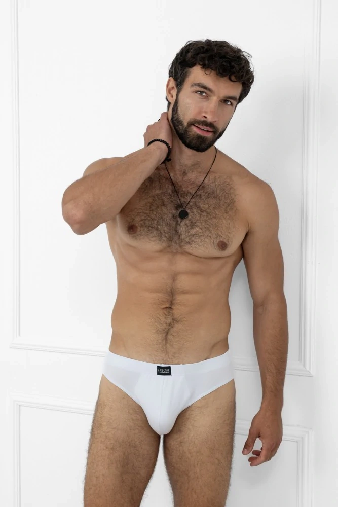 Мъжки слипове Apollo Italian Fashion, бели - памучни, вталени, еластични
