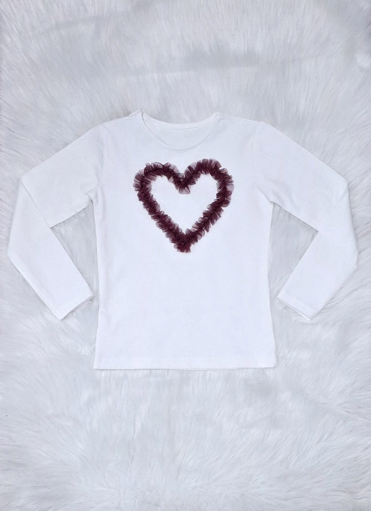 Блуза за момиче Mia Bambarillo в екрю бордо с лък и сърце - памук и тюл