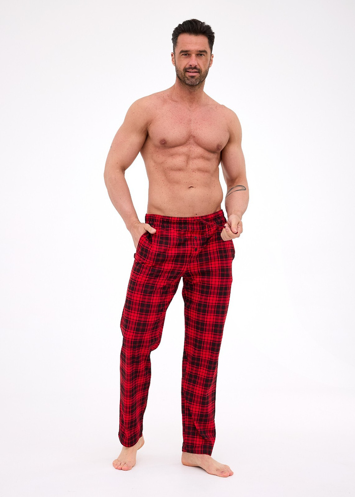 Дългата кройка и вечният кариран модел правят тези панталони перфектни не само като пижама, но и като удобно облекло за дома. Еластичната талия с връзка за регулиране осигурява перфектно прилягане.