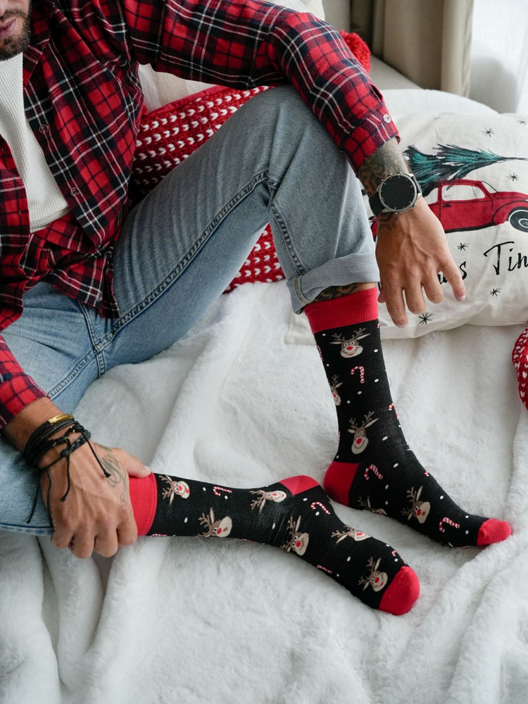 Този модел е декориран с пъстър, празничен мотив на северни елени, който създава весела, зимна атмосфера. Тези чорапи са идеални за ежедневно носене, но също така и като коледен подарък – практични и забавни.