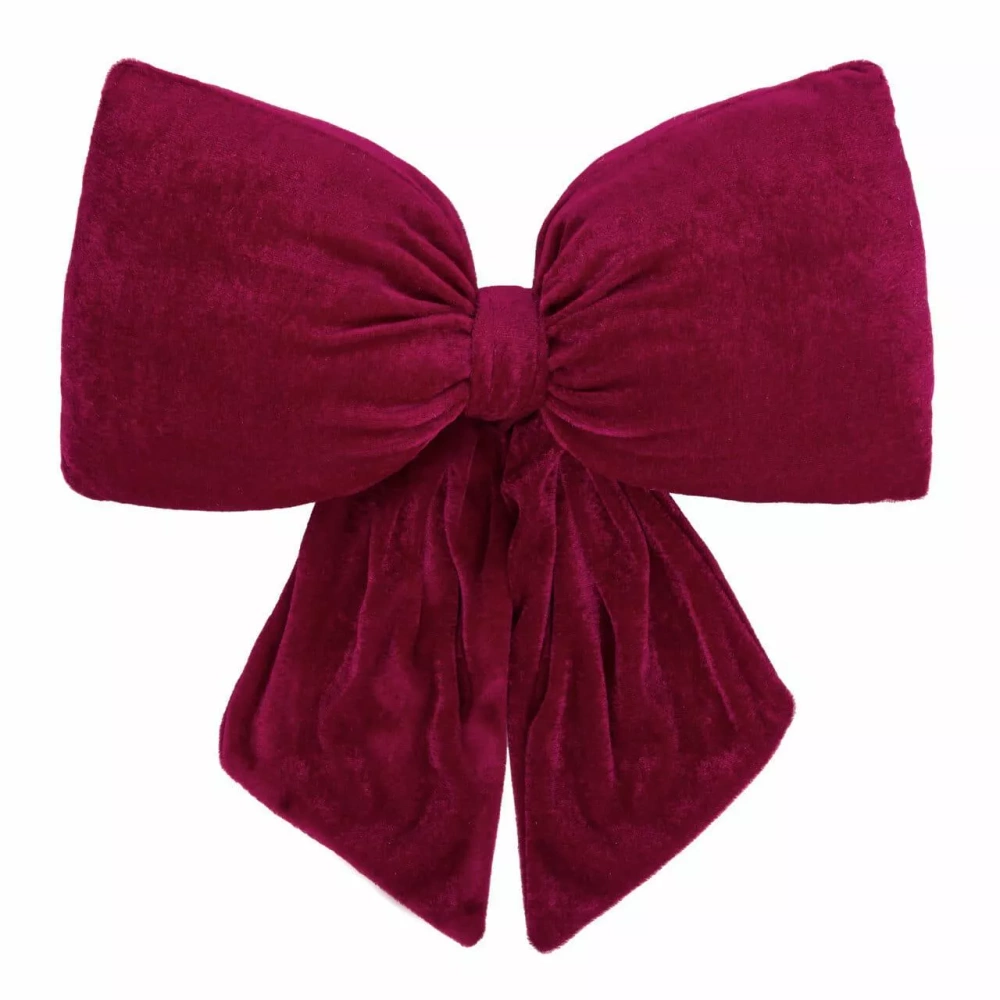 Коледна възглавничка с панделка от Needle and Thread – бордо кадифена възглавничка, сертифицирана от Oeko-Tex