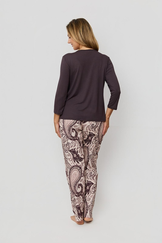 Дамска пижама Iris PU83 Mefemi by Nipplex – вискозна блуза 3/4 с V-деколте и дълги памучни панталони с ориентален принт, луксозен комплект