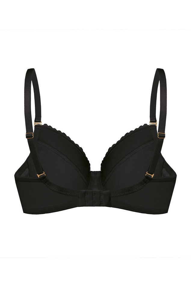 Моделът има махaщи се push-up подплънки, които позволяват да изберете желания ефект – естествено оформяне или допълнително повдигане. Конструкцията BP25 събира бюста към центъра, осигурява стабилност и поддържа правилната форма през целия ден. Страничните части са подсилени с вертикални банели, които предотвратяват преместването на сутиена.