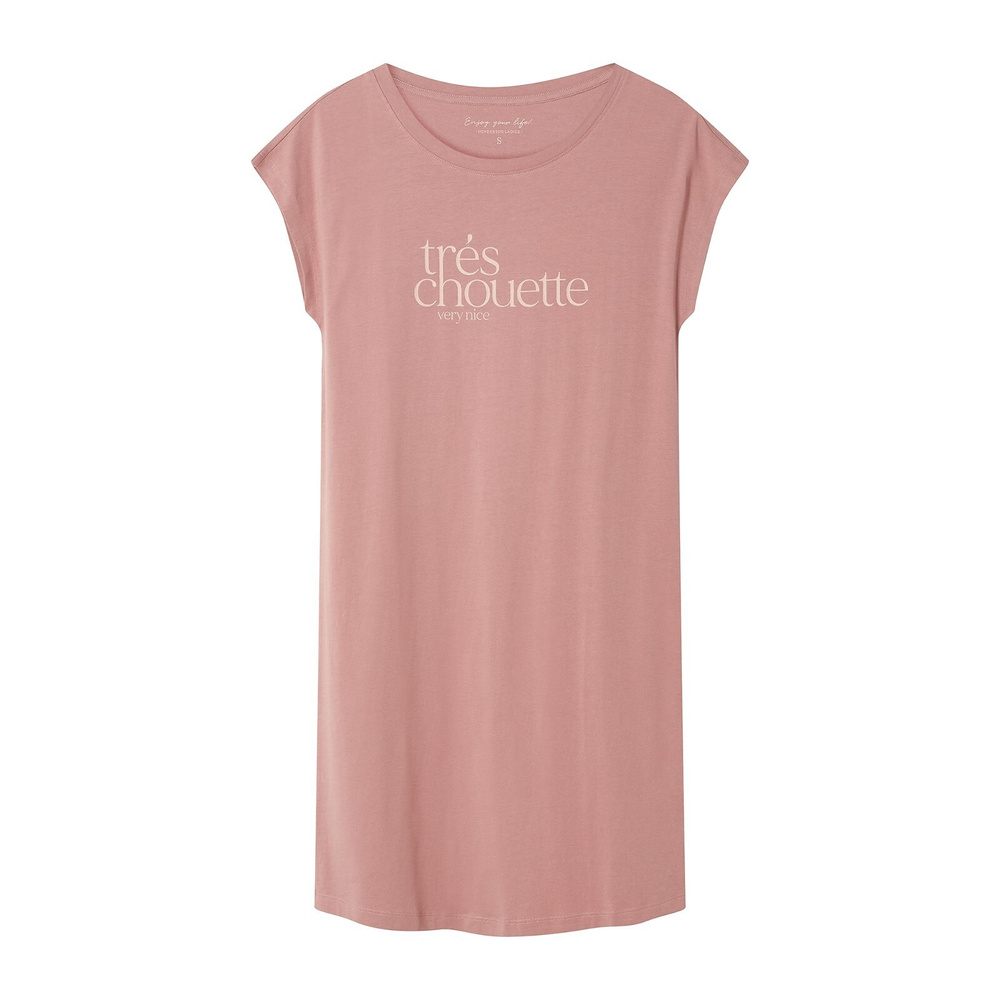 Тази нощница е с къс ръкав и полукръгло деколте, което я прави подходяща за топлите летни нощи, но също така ще осигури комфорт и през по-хладните месеци. Деликатният надпис на предната част ѝ придава изтънчен вид, без да е натрапчиво, а свободният и лек крой предлага пълна свобода на движенията.