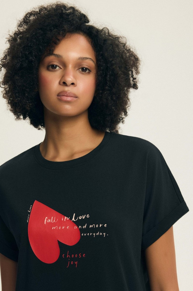 • Естествен памук, свободен силует и нежен принт със сърца. Удобна дамска нощница за спокоен сън и домашен комфорт