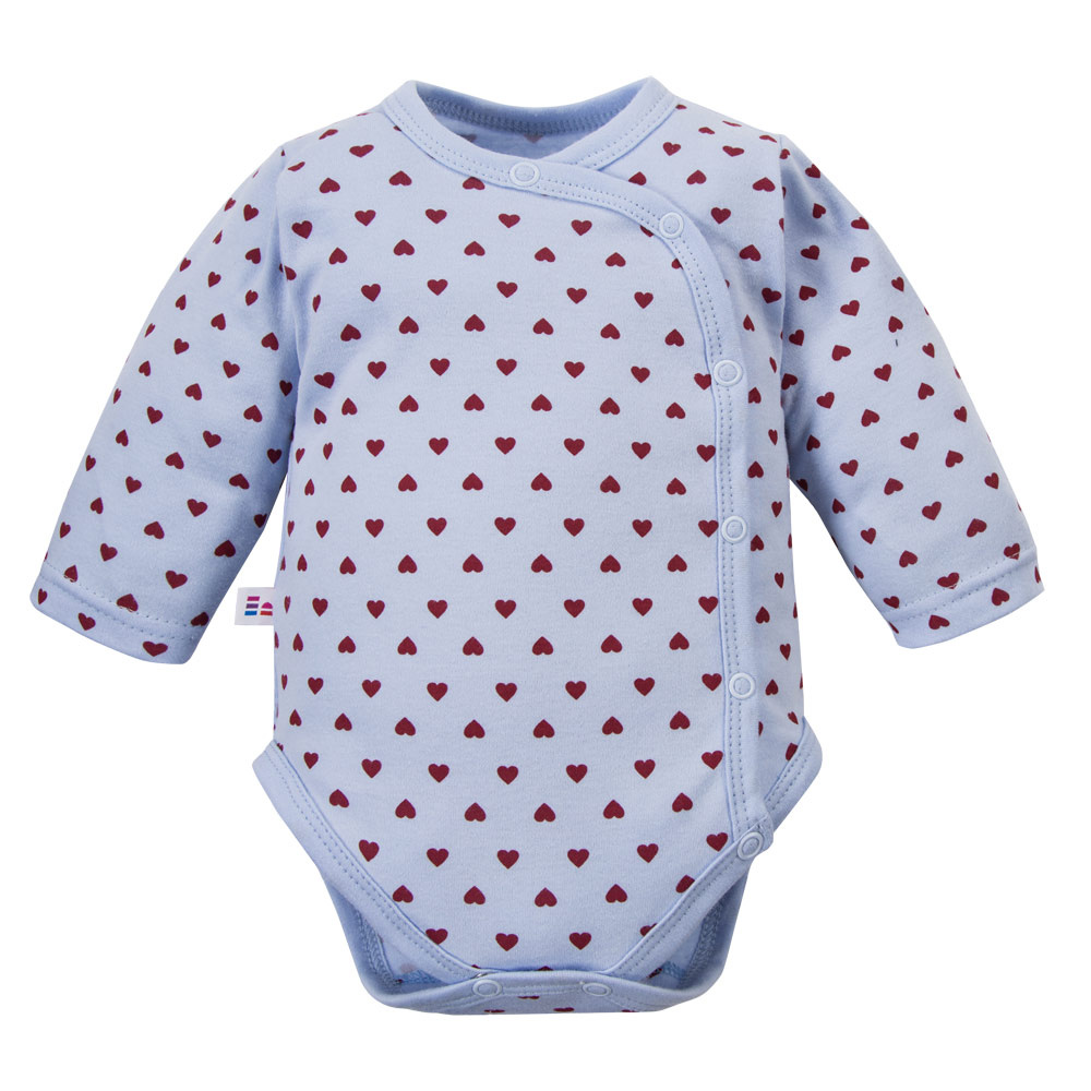 Бебешко боди Love Eevi синьо със сърчица 100% памук с пълно закопчаване