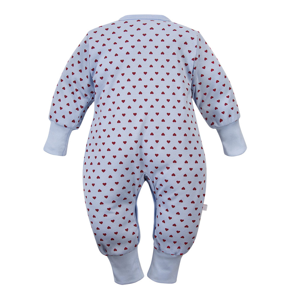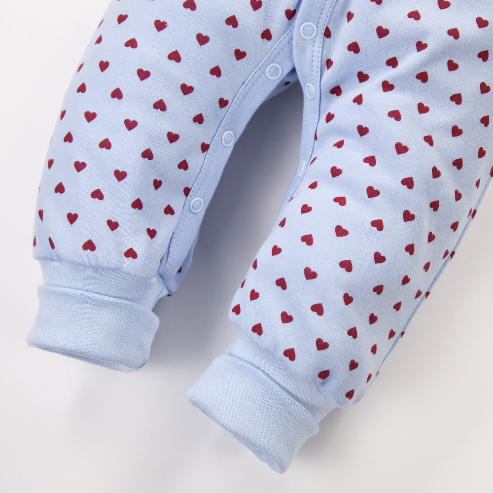 Бебешки гащеризон Love Eevi без стъпала син със сърчица 100% памук