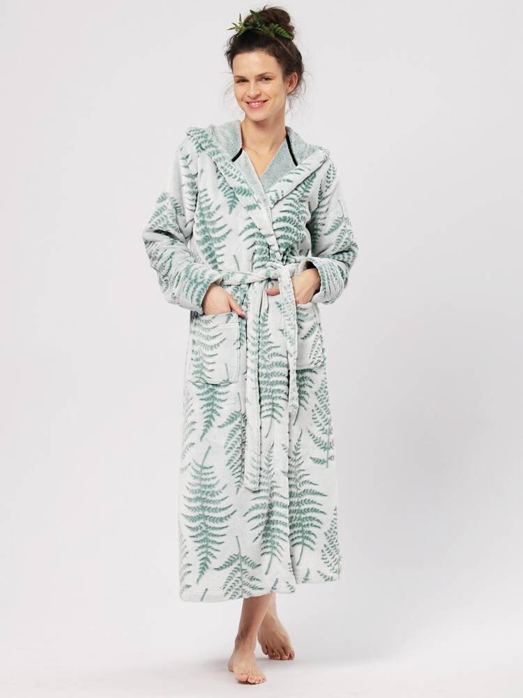 Дълъг дамски халат от мека материя, декориран с нежна шарка