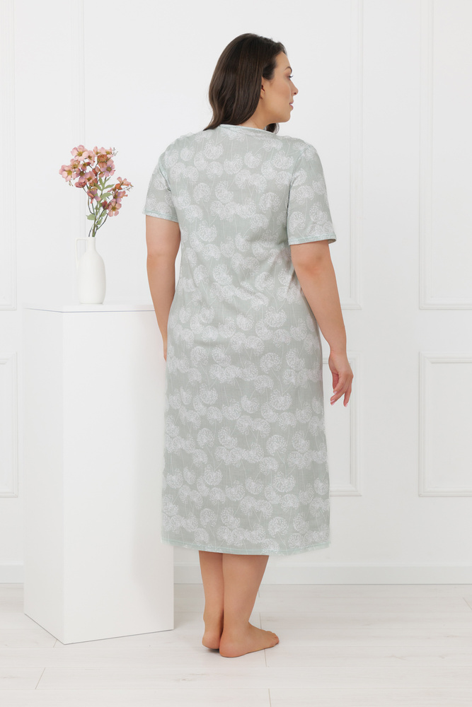 Деликатният мотив с глухарчета и пастелната цветова гама създават усещане за лекота и релакс. Деколтето е оформено с фино наборче, сатенен декоративен кант и малка панделка – детайли, които подчертават женствения характер на модела без излишна показност. Линията Eleni е проектирана с мисъл за дами plus size и се предлага в размери до 4XL. Препоръчваме избор на стандартния ви размер. Поддръжката е лесна – пране при ниска температура запазва мекотата и външния вид на материята.