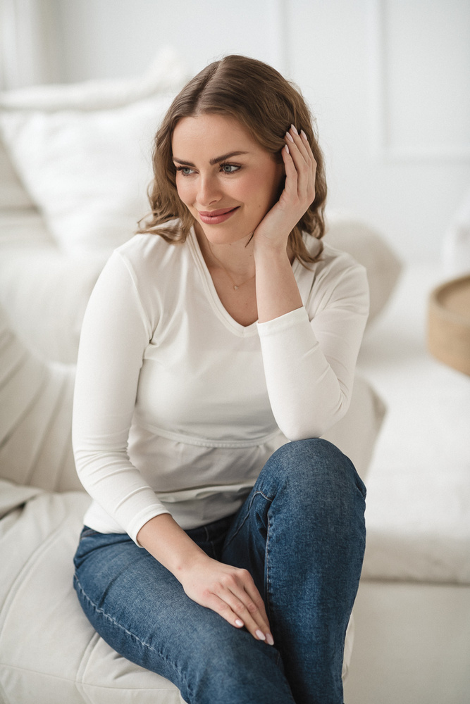 Ако търсите блуза за бременни и кърмене, която ще носите по време на цялата бременност и след раждането, този модел е практичен и дългосрочен избор. Milk&Love Milk Shirt с 7/8 ръкав препоръчваме, когато имате нужда от удобство, бърз достъп за кърмене и елегантна, изчистена визия. Подходяща е както за дома, така и за разходки, посещения при лекар, пътуване или срещи навън.