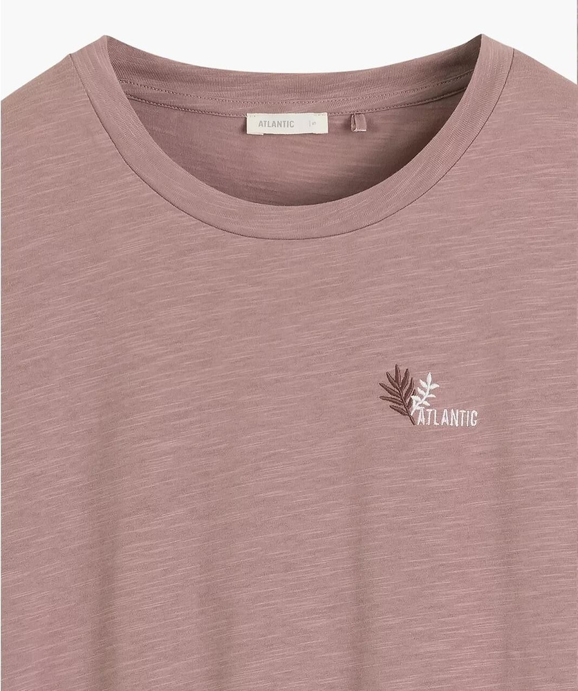 Късият ръкав с деликатно подгънат край придава завършен и изчистен вид, а финият бродиран логотип Atlantic на гърдите подчертава марковия характер без излишна декорация. Това е дамска памучна нощница тип T-shirt, която лесно се комбинира с лек халат или жилетка.