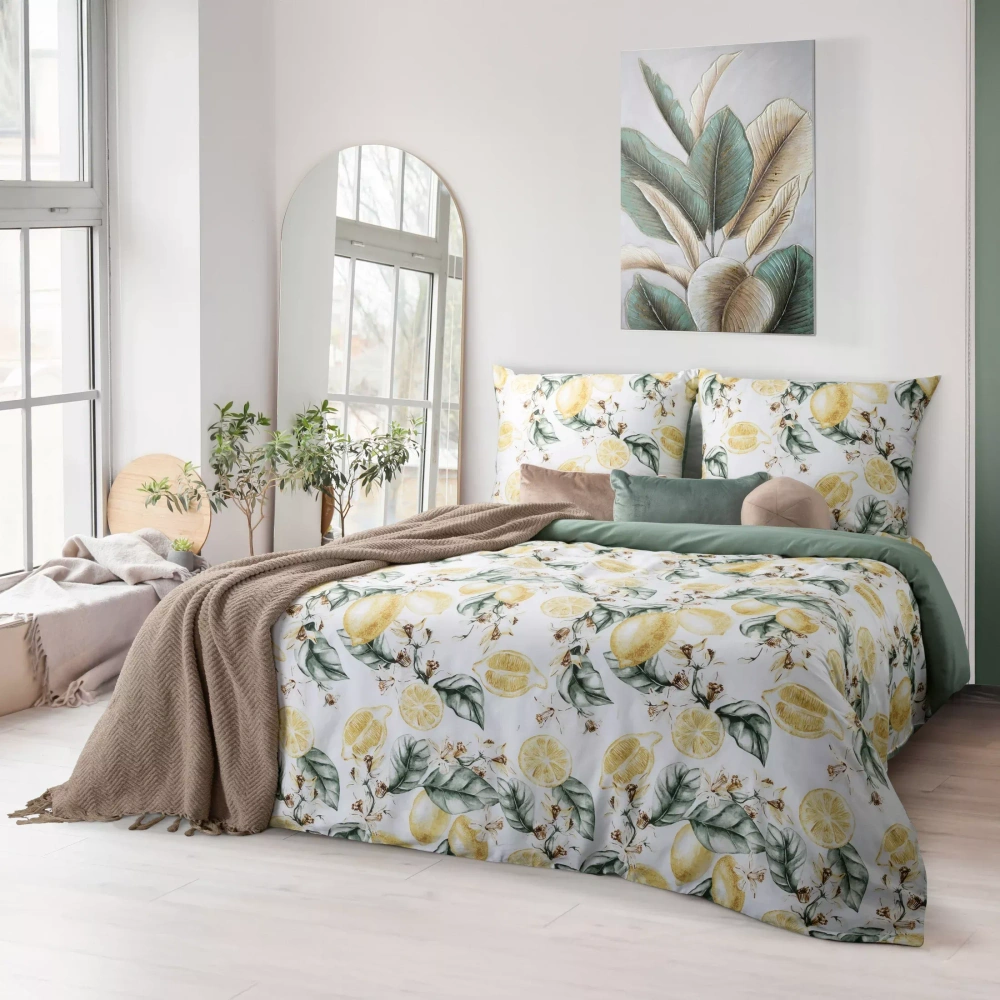 Комплектът разполага със скрити ципове, покрити с естетична платка, което прави смяната на бельото бърза и удобна. Подходящ е както за модерни интериори, така и за класически спални. Лесно се комбинира с едноцветен чаршаф и декоративни възглавници в неутрални или земни тонове.