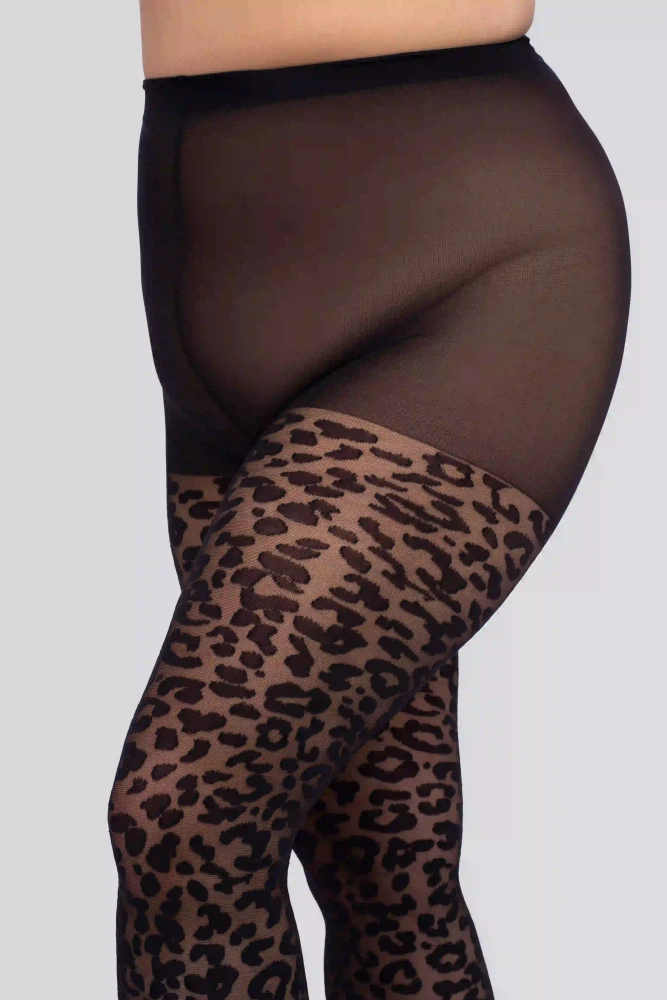 Стилистичен съвет: чорапогащникът с леопардов десен изглежда най-добре в комбинация с едноцветни дрехи – например черна рокля, пола или класически обувки на ток.