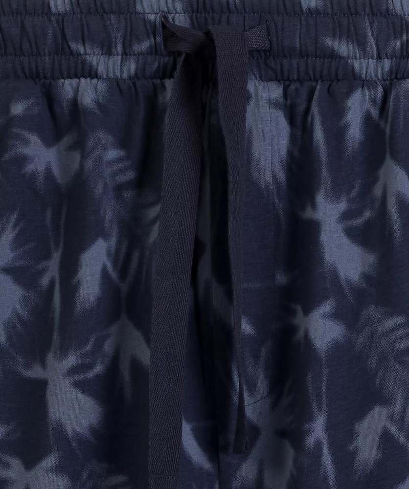 Долната част се състои от свободни къси панталони с мотив на палми, които добавят лек летен стил. В талията има еластична лента, обшита с памук, и връзка за регулиране, което позволява лесно адаптиране към обиколката на талията. Практичните странични джобове допълнително увеличават удобството.