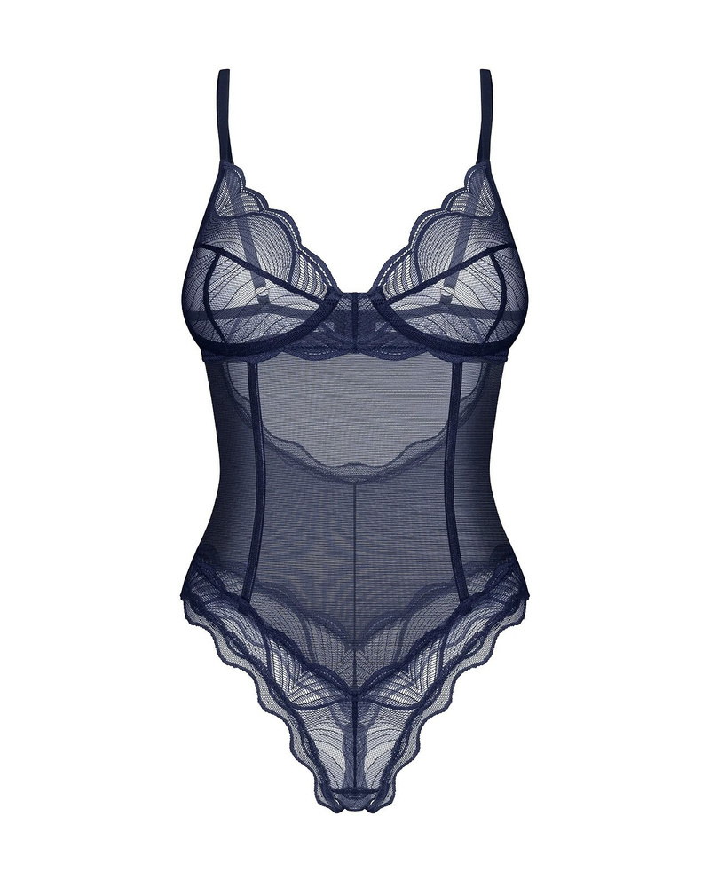 - Съблазнително боди Nightly Blue от Obsessive, създадено да подчертае женствените линии на тялото. Комбинацията от прозрачна материя и мека дантела придава лекота и елегантност, а банелите и регулируемите презрамки осигуряват добро прилягане. Идеален избор