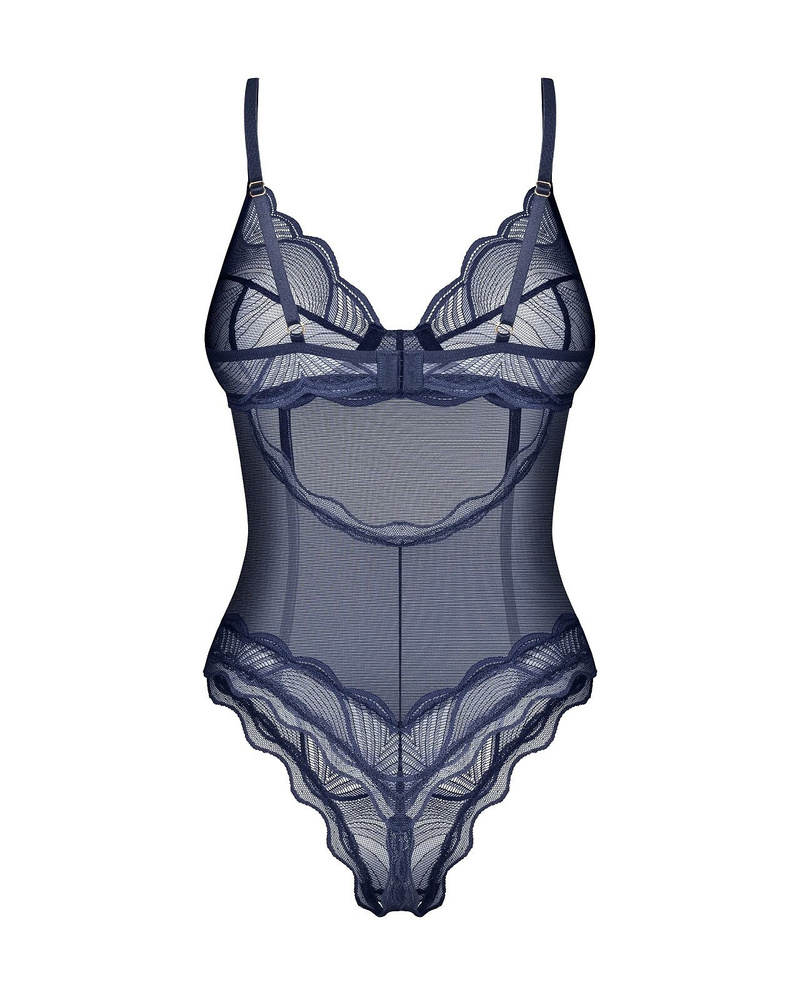 Body Nightly Blue Crotchless Obsessive – дантелено боди с банели тъмносиньо
