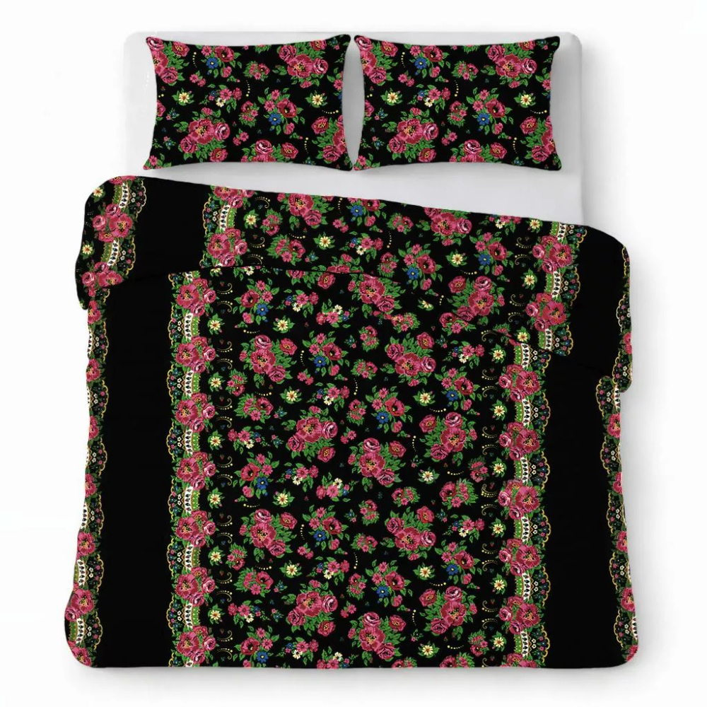Памучно спално бельо от креп комплект дишащо без гладене black with colorful flowers