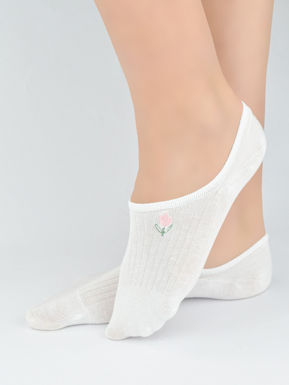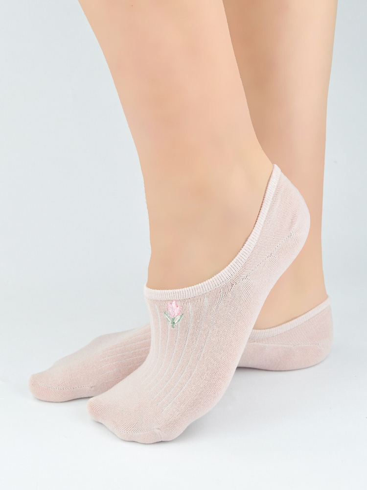 Пружиниращата тъкан придава мекота и лек визуален ефект. Декоративният бродиран цвете или панделка добавя женственост и финес, а плоските шевове и неусещащият се ластик гарантират комфорт без натиск или триене. Силиконовата вложка на вътрешната страна на петата предотвратява сплъзване и осигурява стабилност при движение.