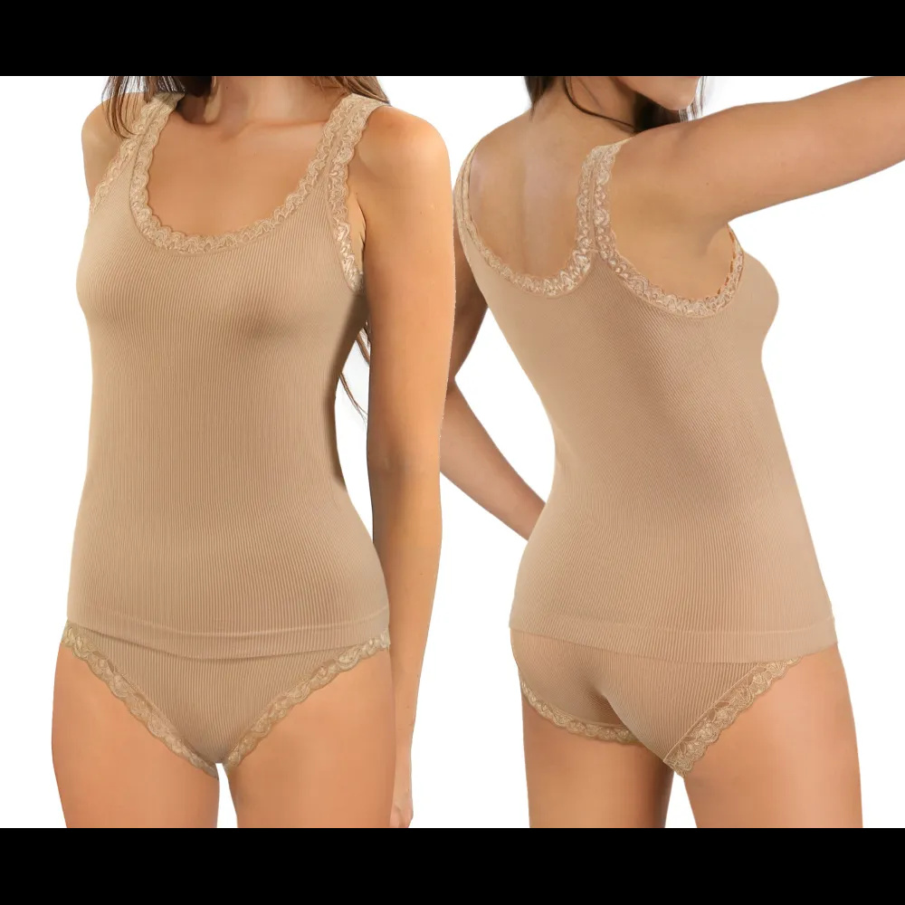 Отговаря на търсения като: дамски безшевен потник, еластичен потник на презрамки, базов дамски топ с дантела, удобен потник за всеки ден.