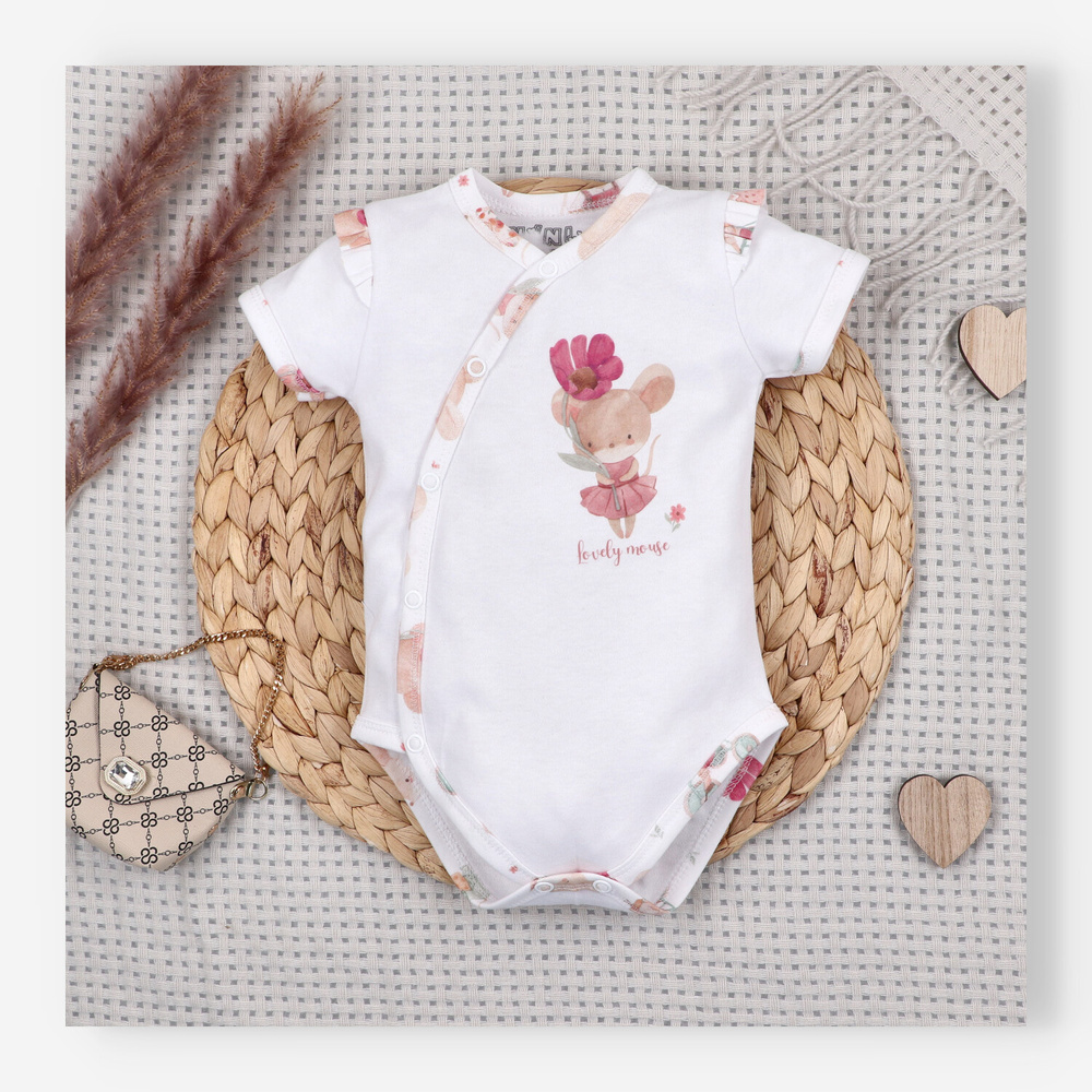 Бебешко боди Nini Little Mouse органичен памук тип прегърни ме къс ръкав