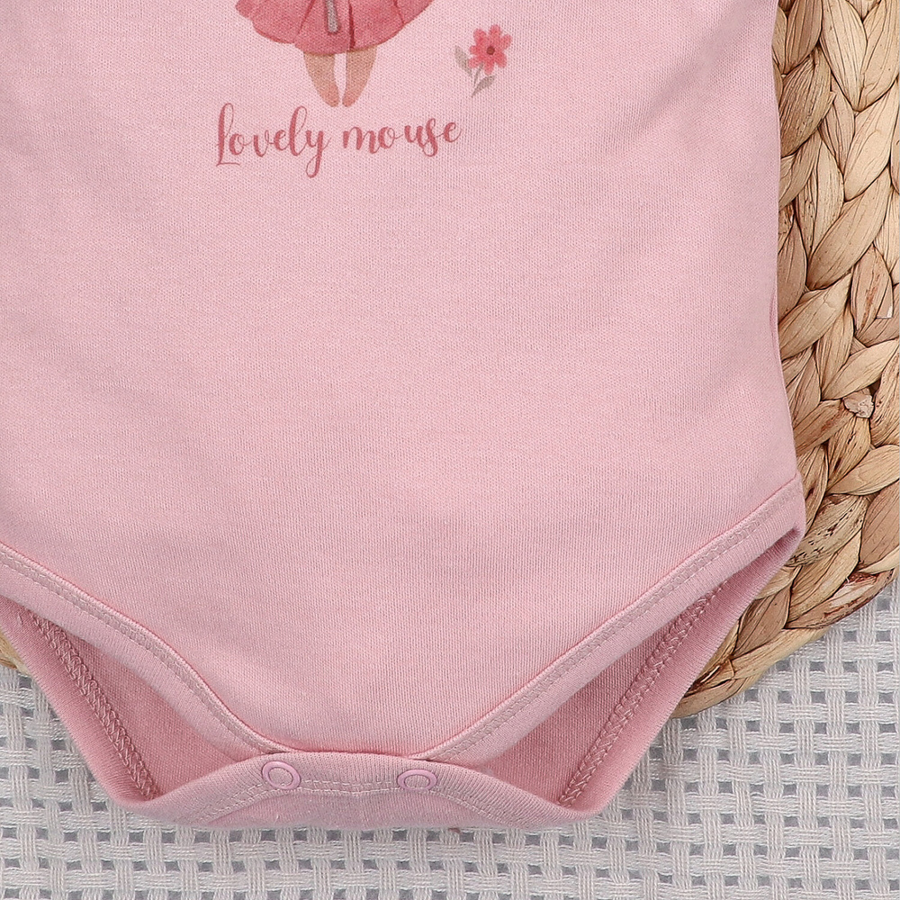 Бебешко боди Nini Little Mouse органичен памук копчета на рамо къс ръкав
