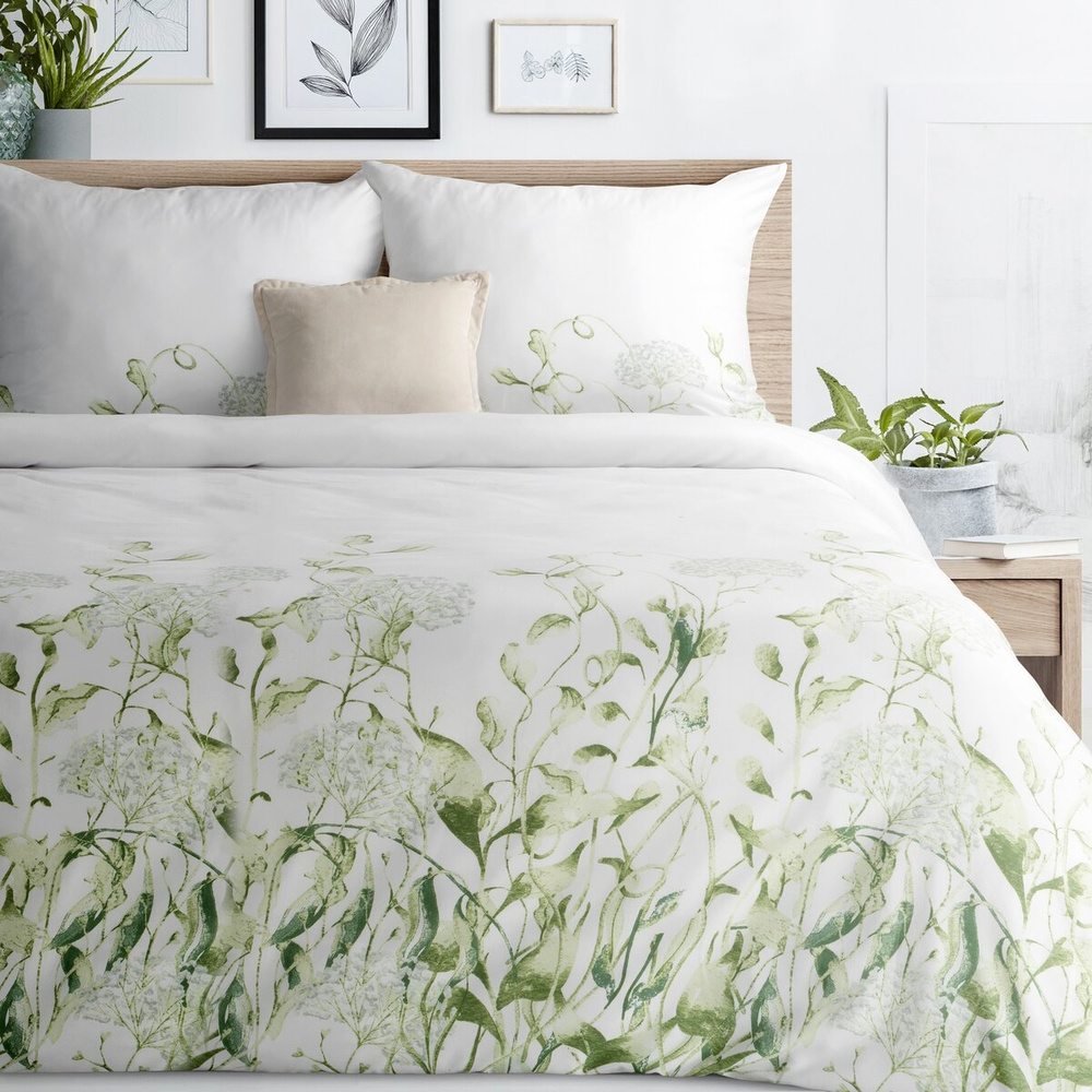 Материята е изработена от фини влакна, които осигуряват мекота и лекота, приятна на допир и подходяща дори за чувствителна кожа. Деликатният цветен принт придава свежест и романтично излъчване, докато обратната страна в изчистен едноцветен дизайн позволява лесно да променяш визията на леглото според настроението или стила на помещението. Това прави комплекта практичен и универсален.
