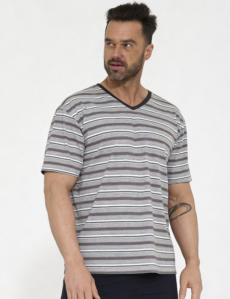 - Лека мъжка пижама Cornette от памук – тениска на райе и къси шорти. Комфорт за сън през топлите нощи и удобство у дома. Избери своя размер и поръчай онлайн.