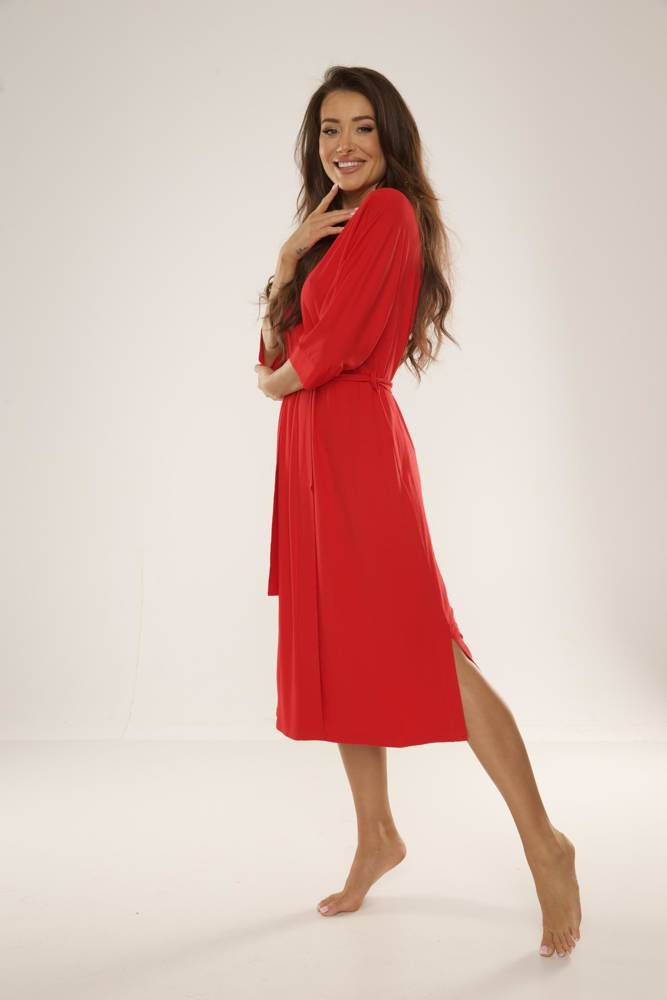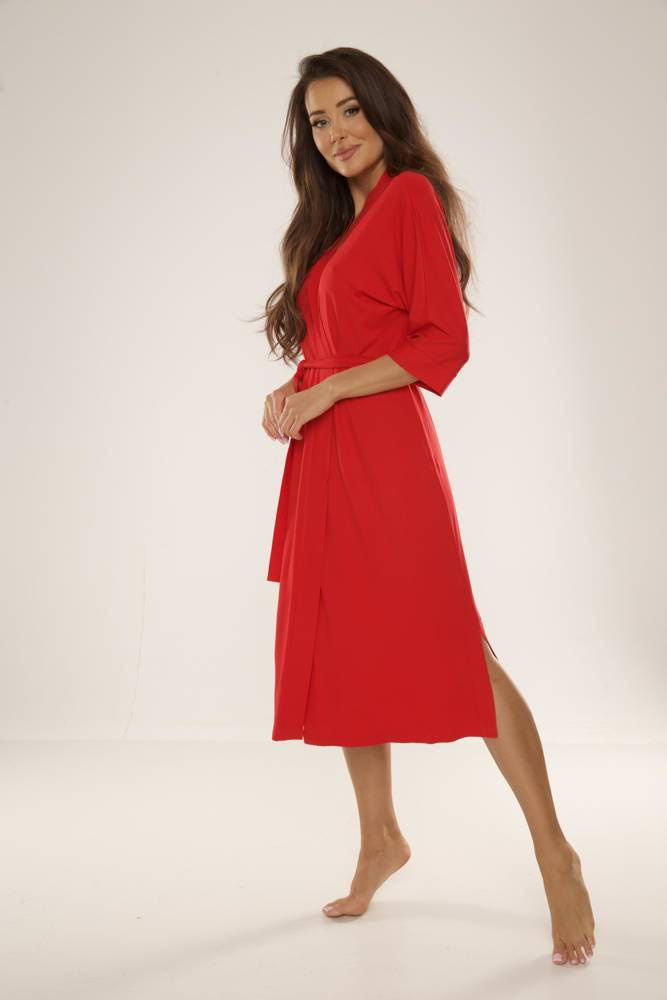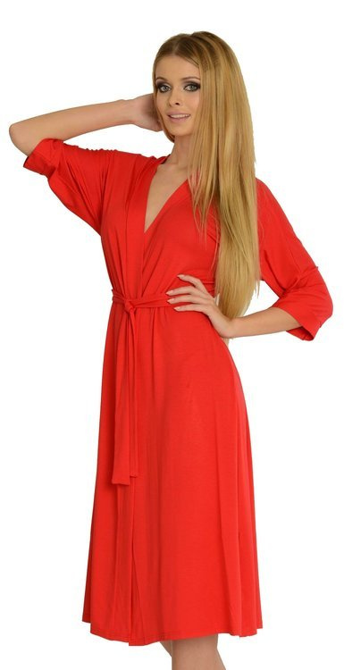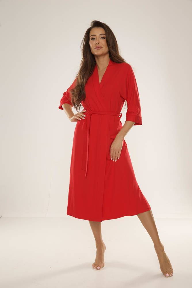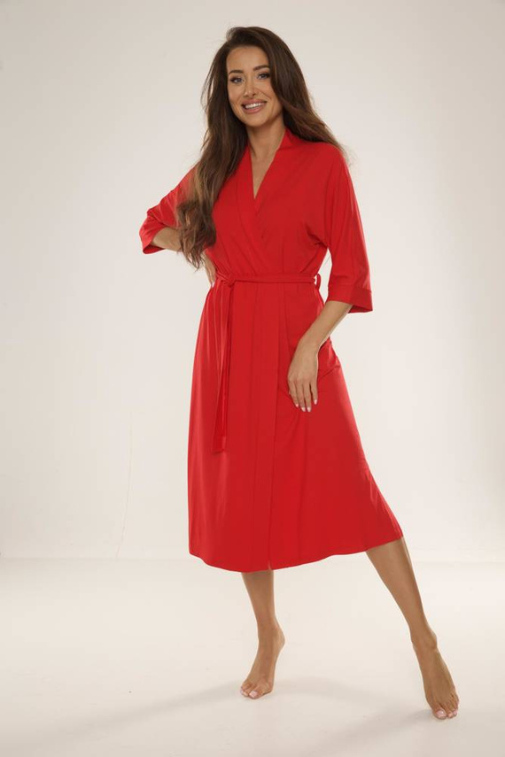 • Елегантен дамски халат 942 Visa на De Lafense, изработен от висококачествена вискоза. Дълга кройка, 3/4 ръкав и колан създават женствен и класически вид.