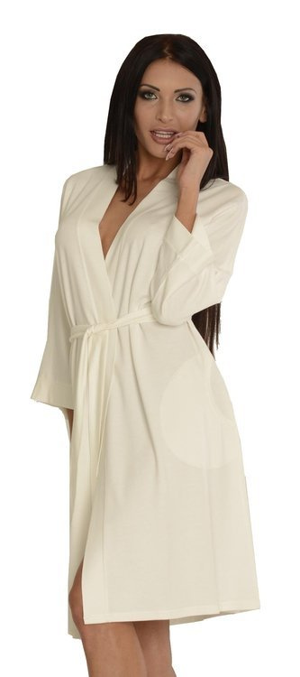 Дамски халат от висококачествена вискоза 94% с еластан. Къс, с дължина до коляното, завързан на талията, 7/8 ръкав. Идеален комплект с тениска или пижама от колекцията Visa. Придава усещане за комфорт и свобода, завързва се с колан, идеален за халат. Висококачественият продукт не се разтяга и не се влошава при пране!!!