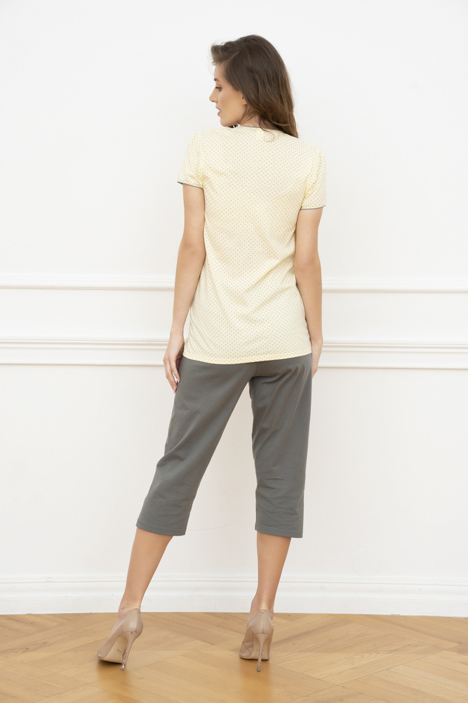 Пижамата Felicita е изработена от мек и деликатен 100% памук с мисъл за кърмачките и бременните жени. Горнището на пижамата е проектирано за лесен достъп до гърдата, така че да можете бързо да нахраните бебето си. Женственото докосване на този модел е принтът от нежни точки в спокойни пастелни цветове. Пижама Felicita за удобна и красива визия.