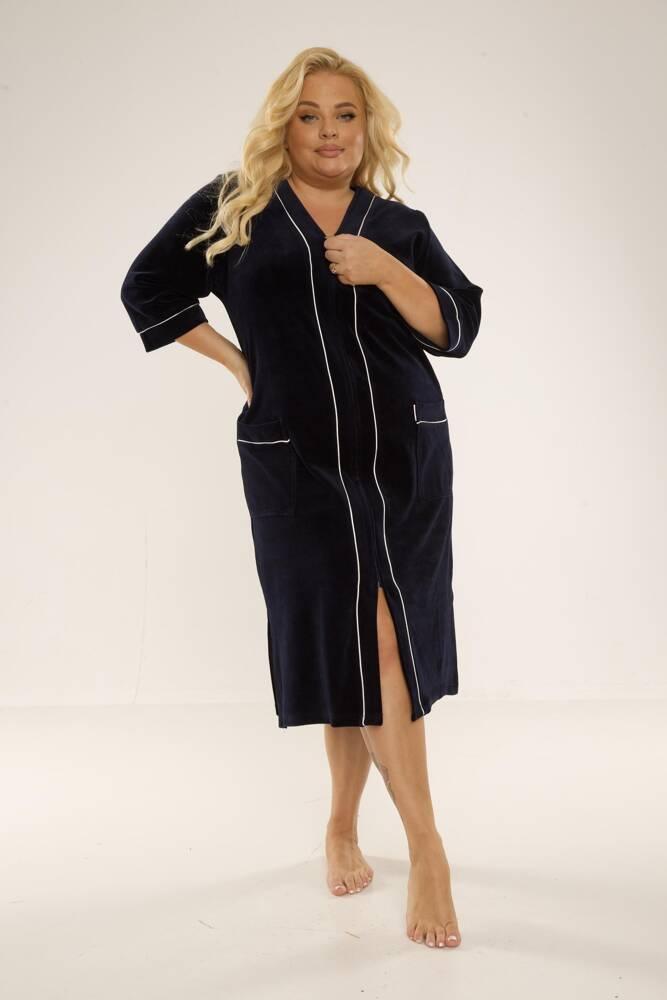 974 / 352 Дамски халат от велур Forex - тъмносин