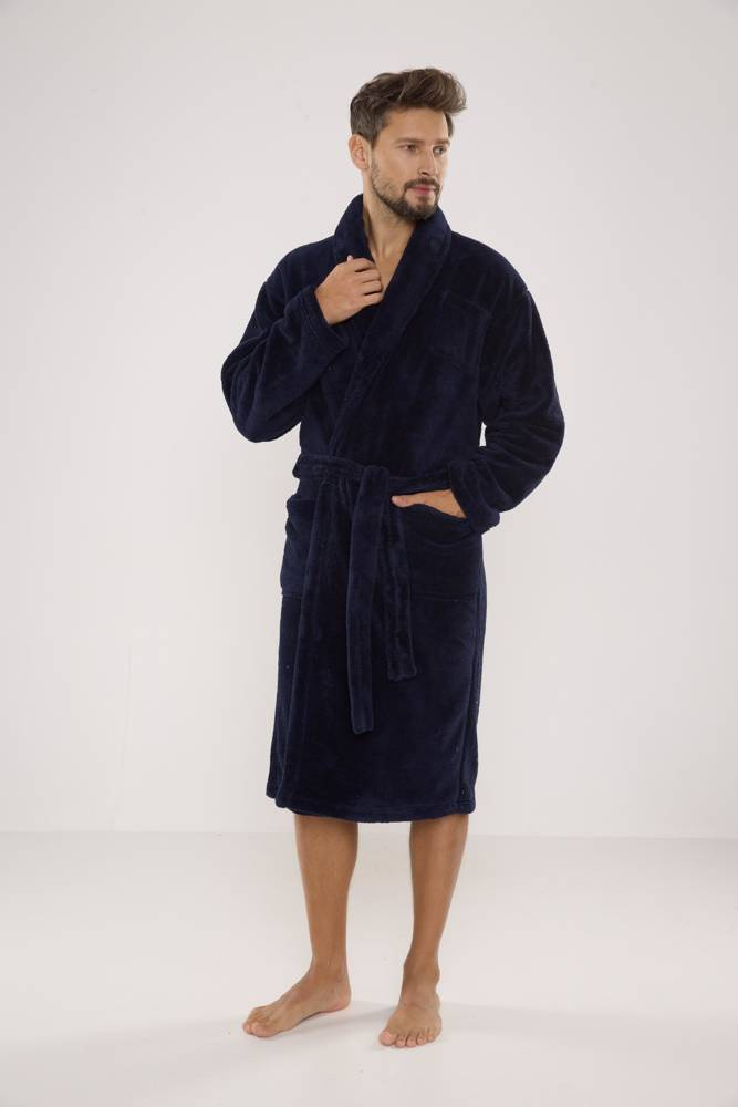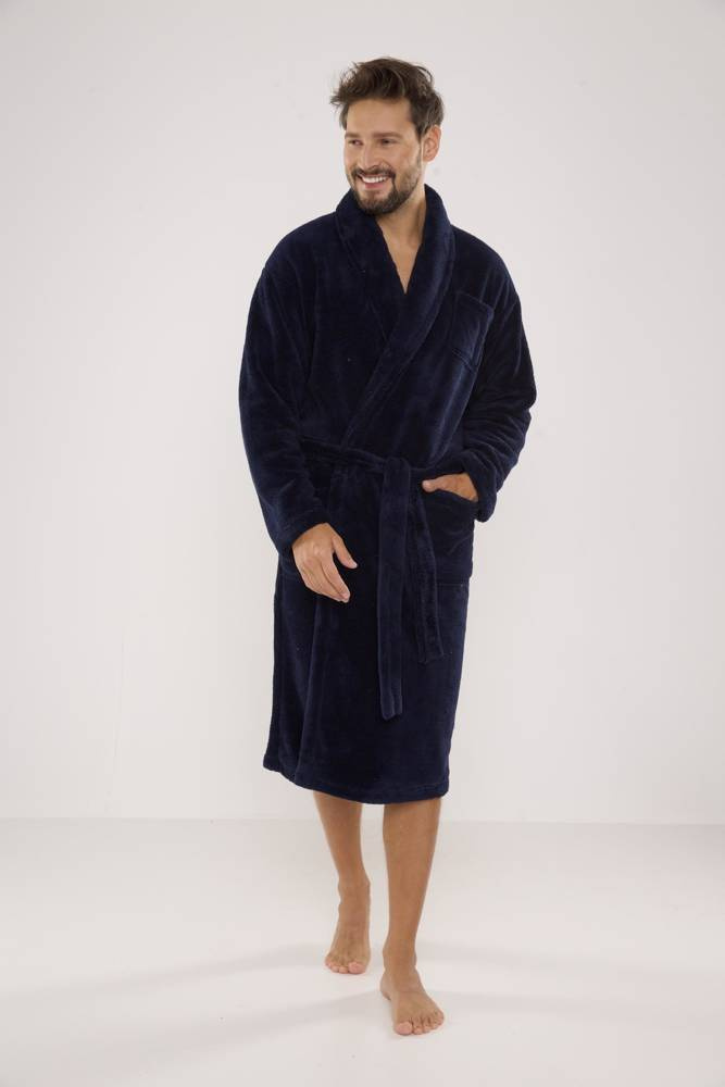 811 Мъжки плюшен халат De Lafense - тъмносин