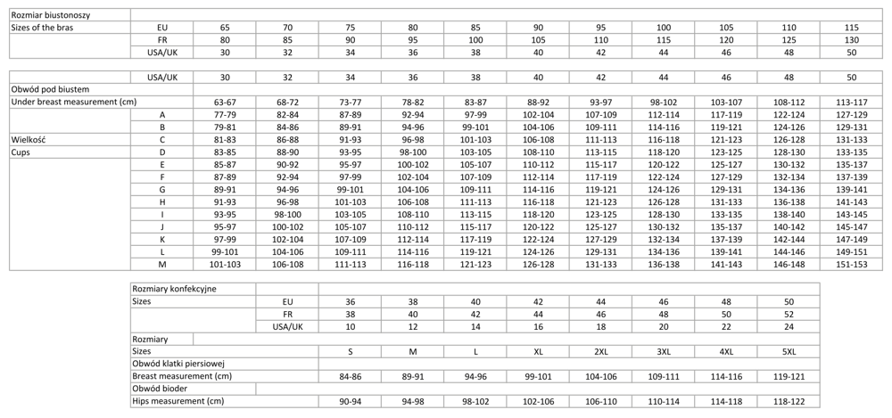 | Размер | обиколка под бюста | обиколка на бюста |