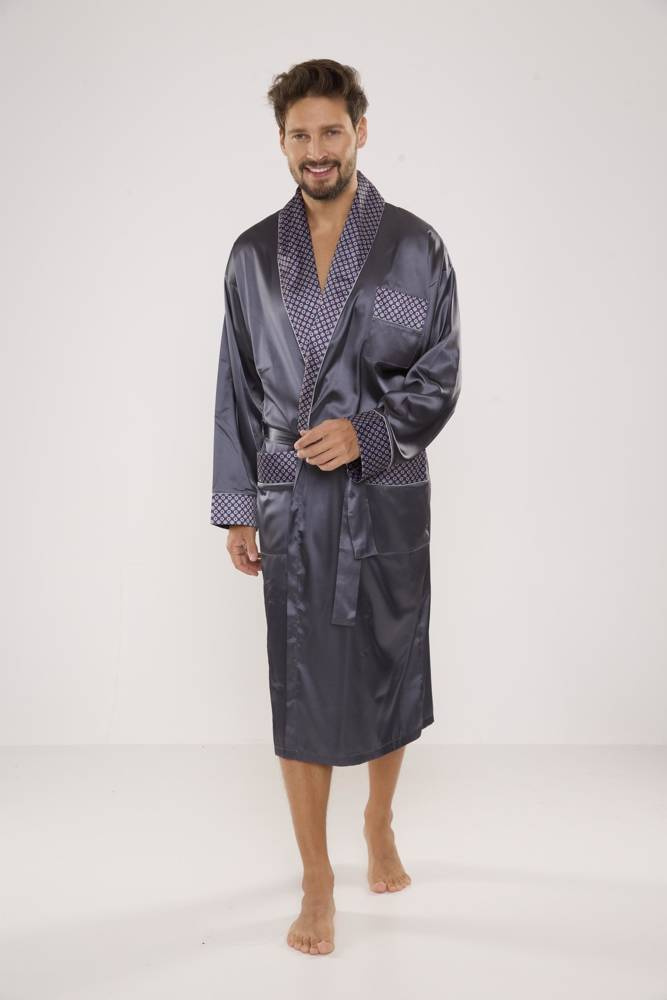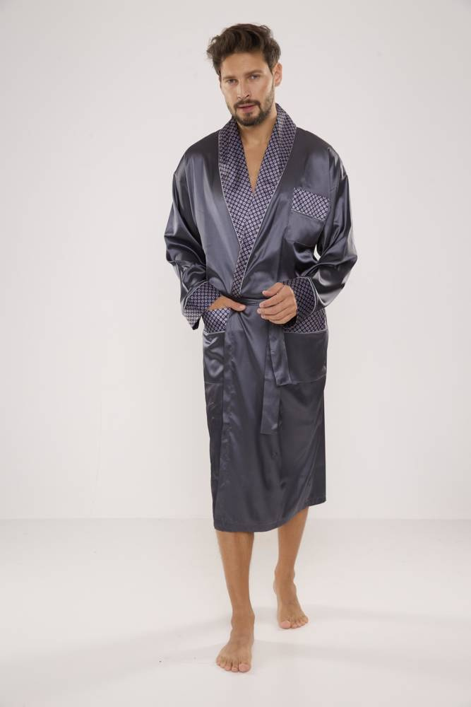 940 Forex мъжки сатенен халат за баня - сив