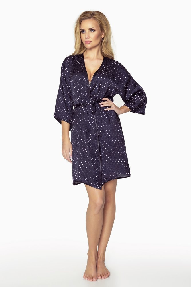 Дамски къс халат, завързан на кръста. Изработен от сатен на точки. Модел за топли летни дни или горещи зимни нощи. Нежно обгръща женската фигура за максимален комфорт и свобода. Покрива тялото само до височината на бедрата. Материалът не се боядисва и не се деформира след измиване. Халатът за баня е опакован в красива кутия от две части, така че ако търсите нещо за подарък на половинката си, това е идеалният вариант за вас.