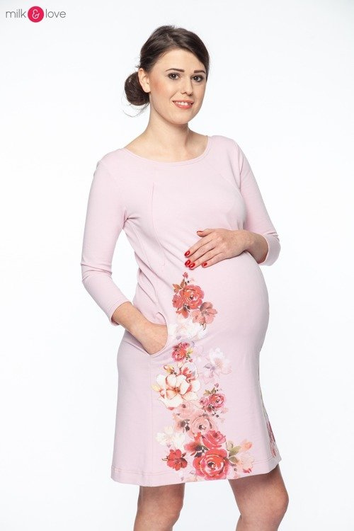 Sukienka ciążowa i do karmienia MilkA Milk&Love pudrowy róż w kwiaty