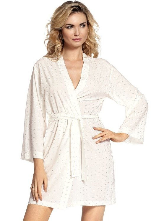 Дамски халат от висококачествена вискоза 94% с еластан. Къс, завързан на талията, с 3/4 ръкав. Модел, украсен с мотив на сърце.