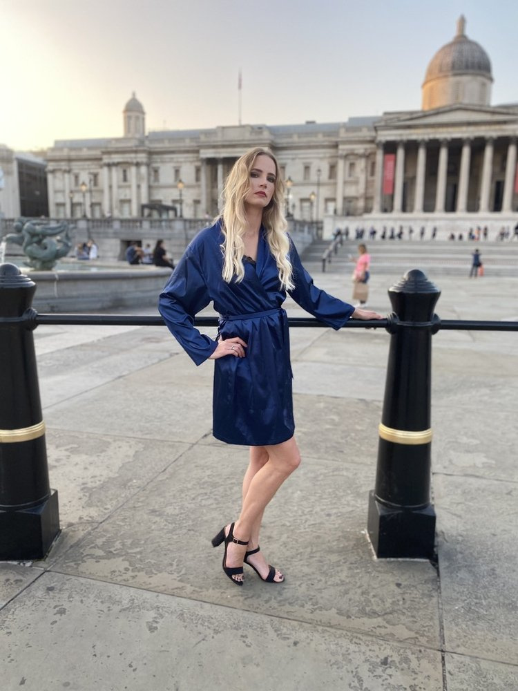 Простият, къс сатенен халат впечатлява с елегантността си и почти универсалната си употреба.