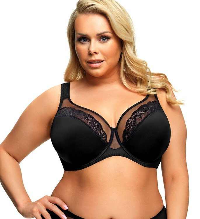 Мек сутиен с подплънки - горна линия на чашките от тюл с деликатна дантела с флорален десен. Странични части от еластична, устойчива на разтягане материя Lycra, подсилена с вертикални китови кости, каишки, които не могат да се свалят, подплатени с памук - ширината им зависи от размера.