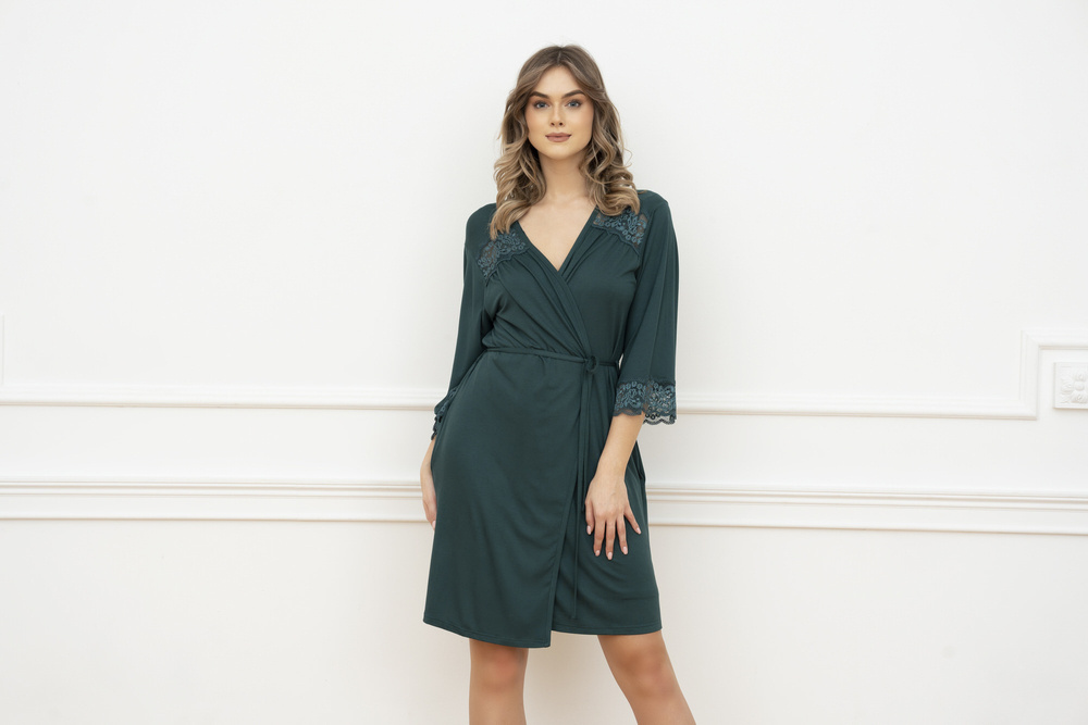 Халат за баня Samaria Италианска мода 3/4 ръкав - тъмнозелен
